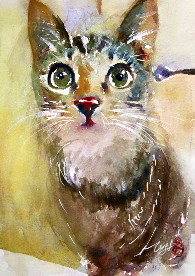 徐腾飞 《萌猫鱼丸之一-大连》 27x39cm 纸本丙烯2015
