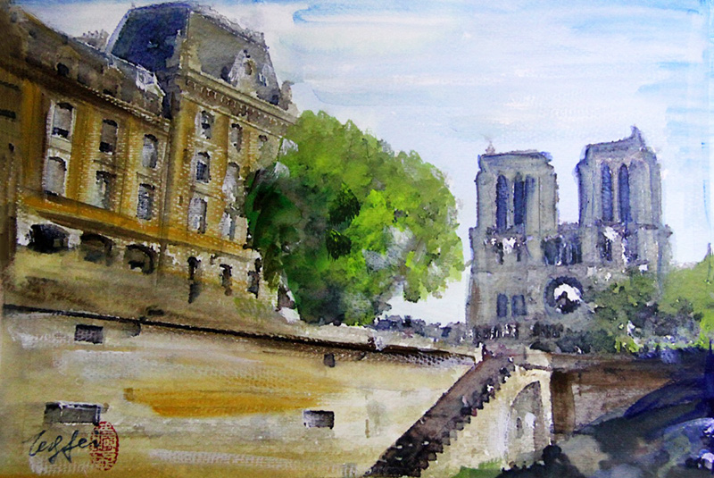 徐腾飞 《塞纳河沿岸-巴黎》 27x39cm 纸本丙烯2015