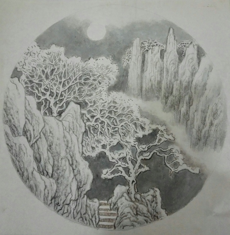 1997年《长白月下》入选当代第三届中国山水画展(已出版画集),