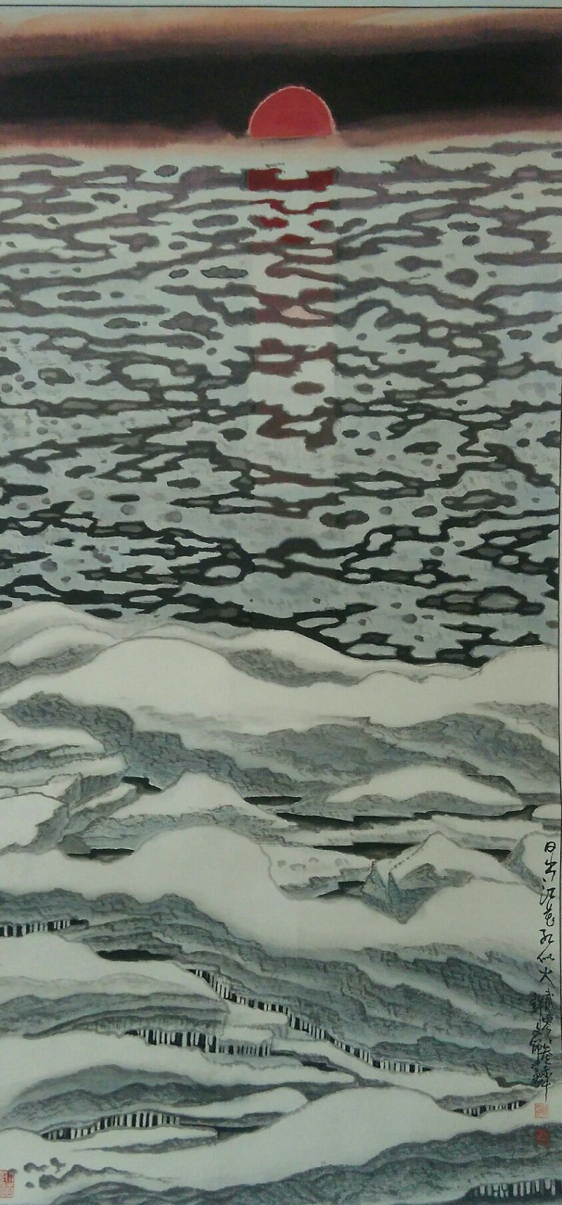 XWBYG443 中国美协 许文邠《日出江山红似火火》68x130