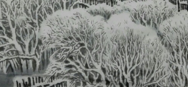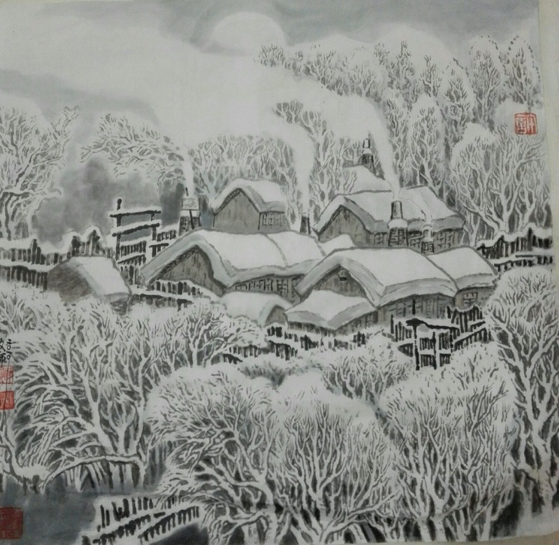 1997年《长白月下》入选当代第三届中国山水画展(已出版画集),