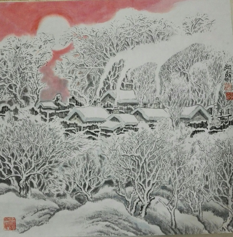 1997年《长白月下》入选当代第三届中国山水画展(已出版画集),