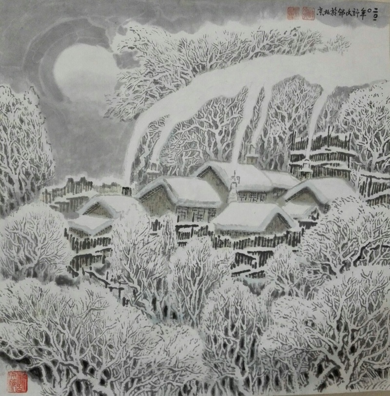 1997年《长白月下》入选当代第三届中国山水画展(已出版画集),