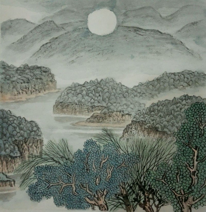 1997年《长白月下》入选当代第三届中国山水画展(已出版画集),