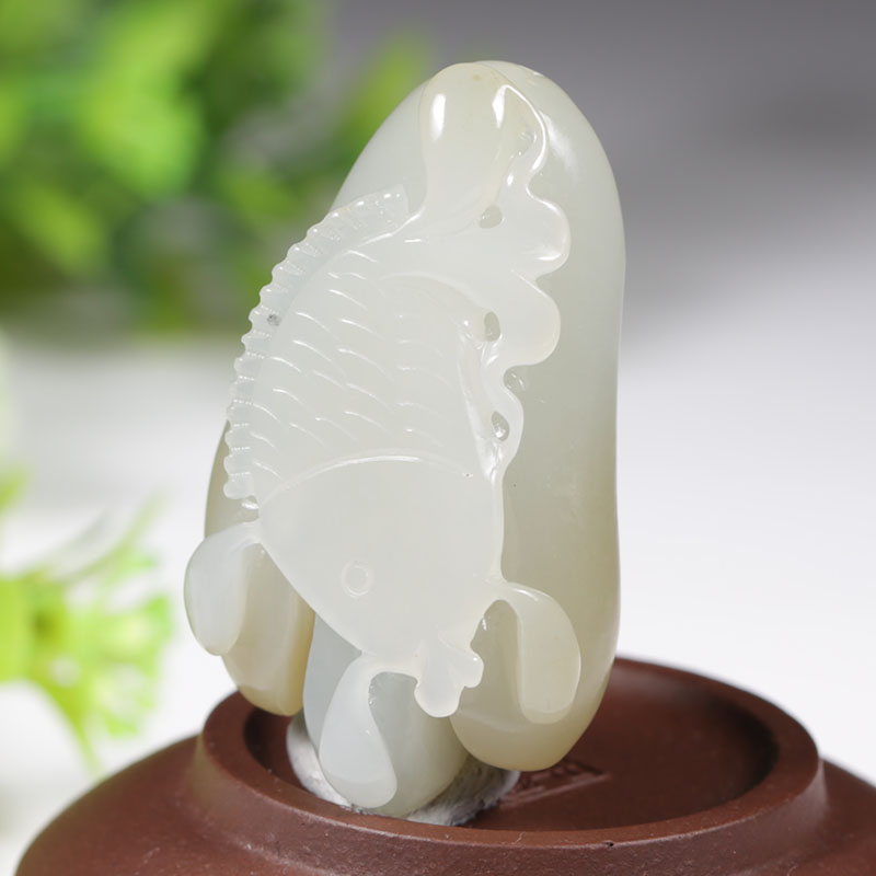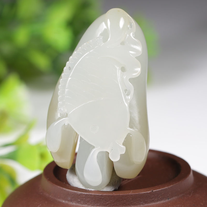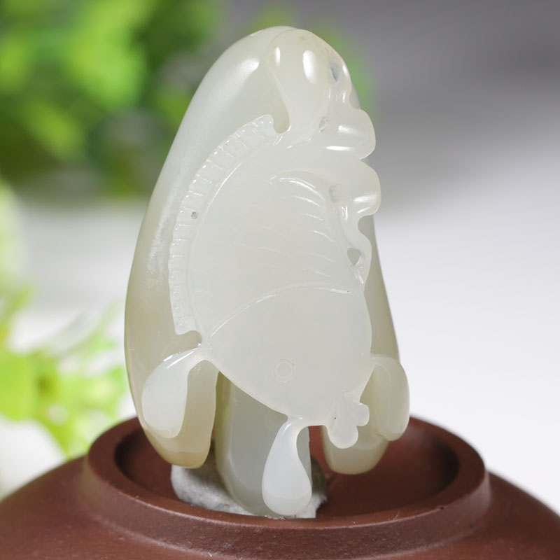 和田玉白玉抓住机遇,玉质温润细腻,手感舒适,抛光精细。雕刻抓住个一条大鱼,取