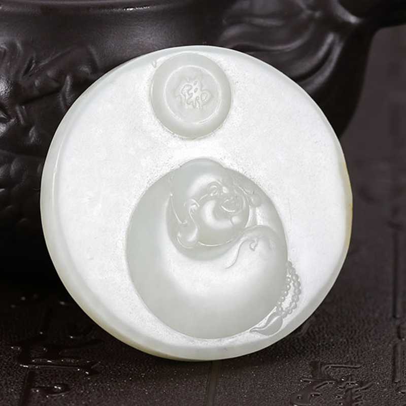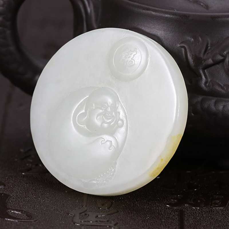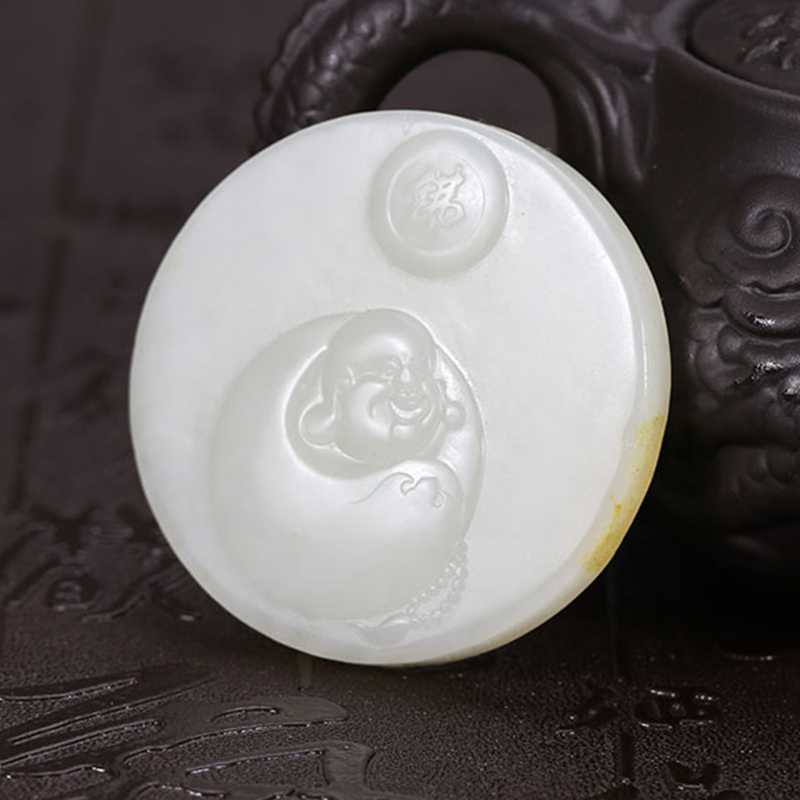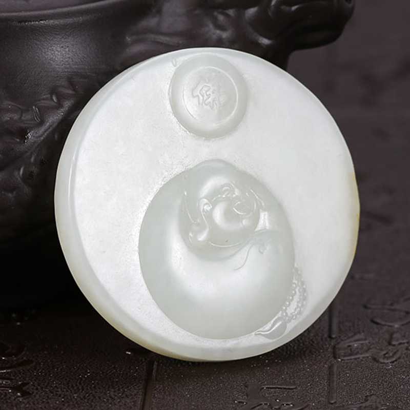 和田玉白玉挂件笑佛,玉质细腻油润,手感温润,舒适,线条清晰流畅,是不可多得的