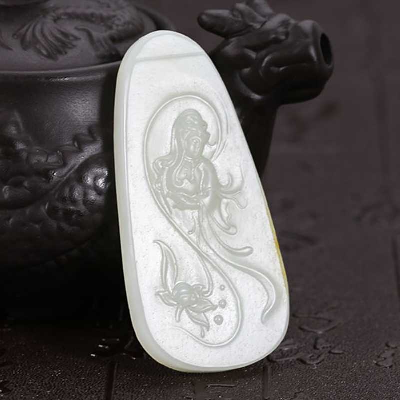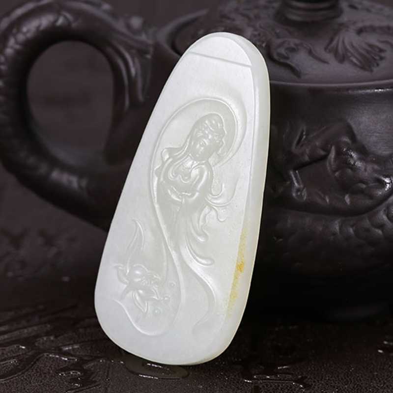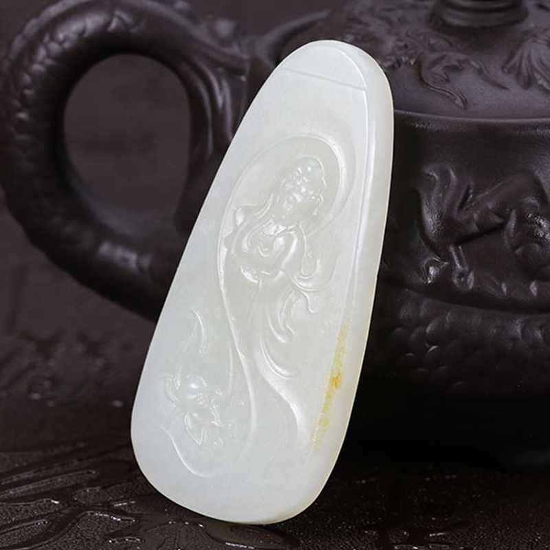 XYYYH43 和田玉白玉观音挂件 81*38*6mm