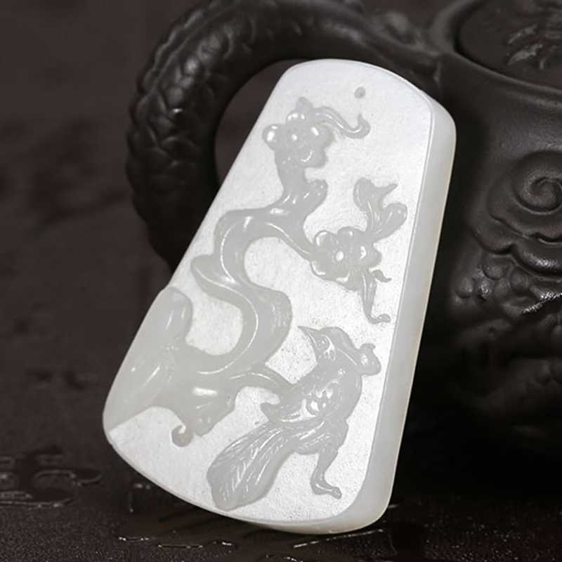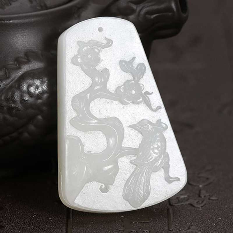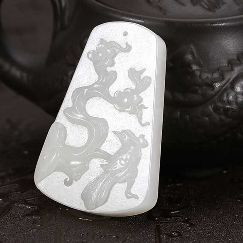 和田玉白玉喜上眉梢挂件,材质上乘,脂感浓厚,肉质细腻,油润,雕工精细,抛光佳,