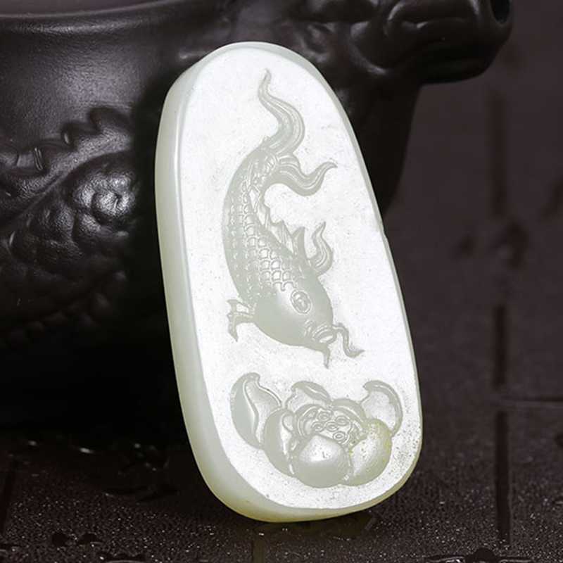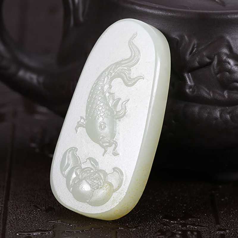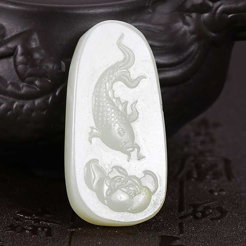 ,雕工精湛绝美,线条清晰流畅,寓意着连年有余,佩戴精美,是不可多得的极佳藏