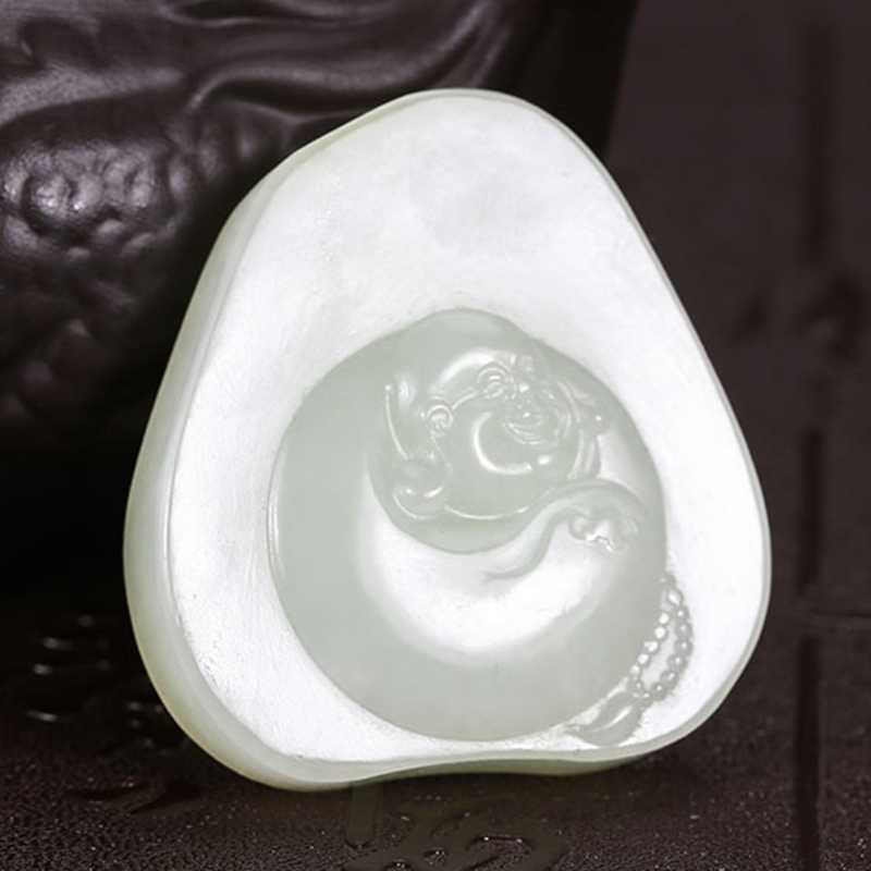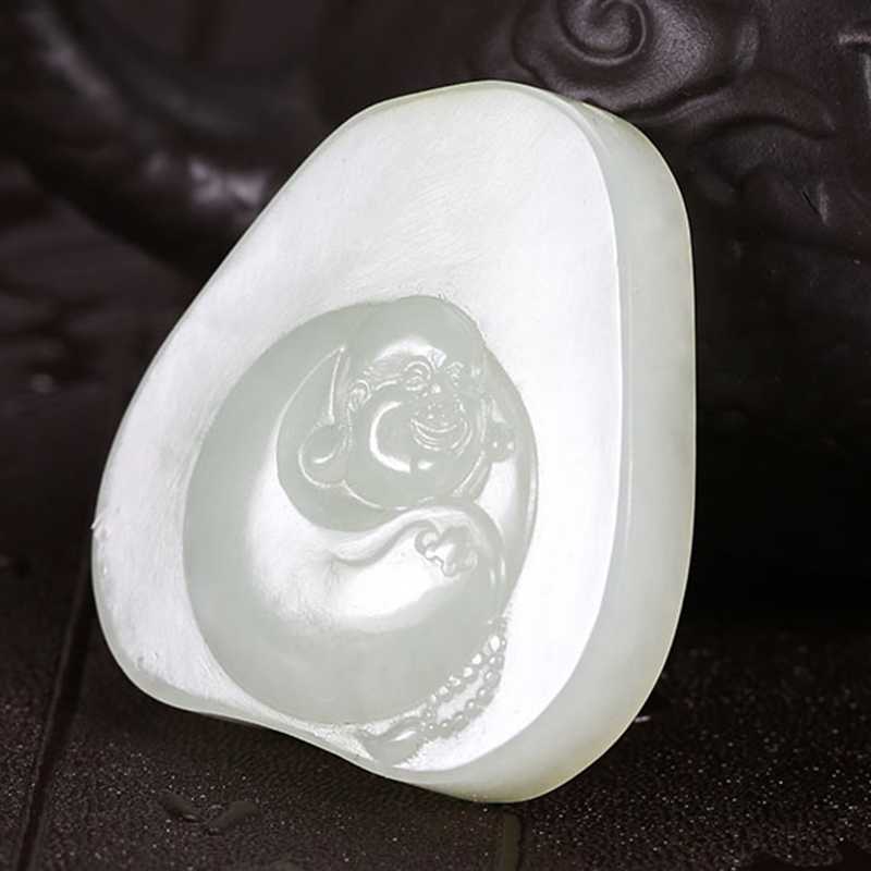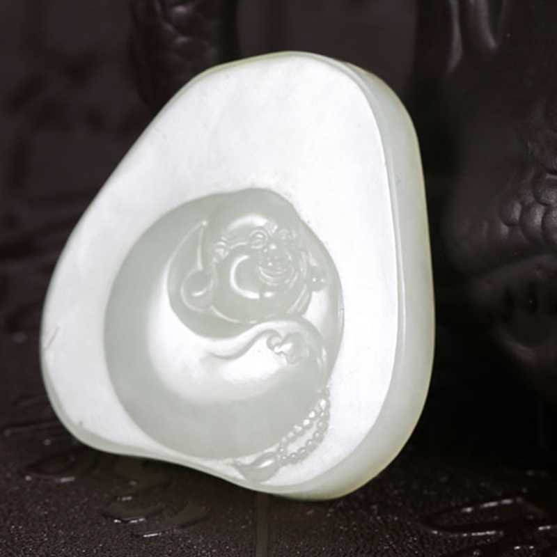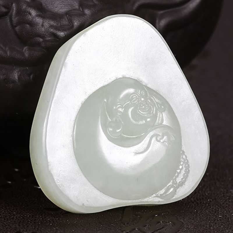 和田玉白玉挂件笑佛,玉质细腻油润,手感温润,舒适,线条清晰流畅,是不可多得的极佳