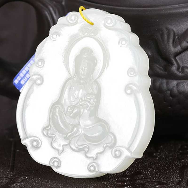 观音开脸细腻,慈眉善目,一派祥和之气,观音谐音"官印"有平步青云、步步高升之意,