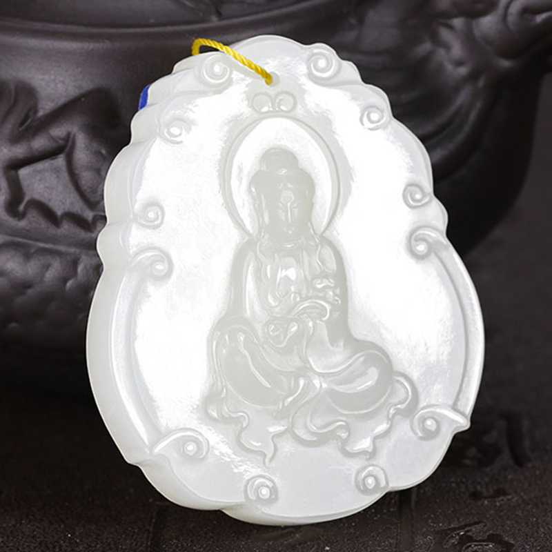 XYYYH64 和田玉羊脂玉观音挂件 55*45*9mm