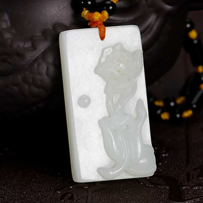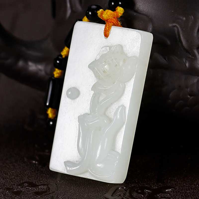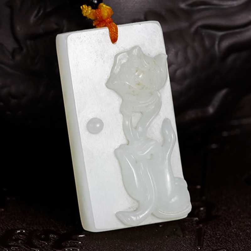 和田玉白玉一品清廉挂件,雕刻精美,玉身巧雕莲花,花瓣层层叠叠,层次错落有致,