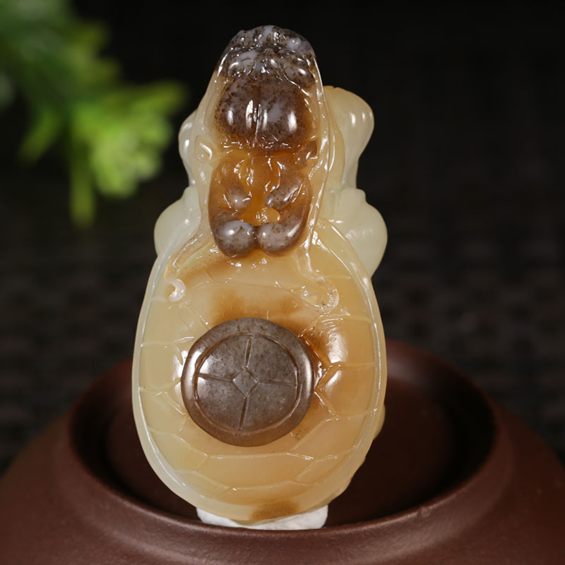 和田玉糖羊脂白玉龙龟挂件,玉质温润,雕工精湛,栩栩如生。龙龟是属於吉祥四灵,