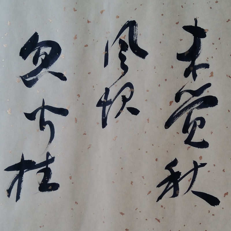 作品介绍:此作品“未觉秋风起”为近作,书体为行草书,34X90条幅,白色宣纸,墨色沉香,运笔生动、酣畅、淋漓,内钦三枚印鉴:闲章和姓名、雅号印。“未觉秋风起,忽闻桂花香”(自联句),禅是什么?禅是顿悟,求不得,不求也不得,有意无意出真意……适合裱挂于厅堂、书房,励志向上。