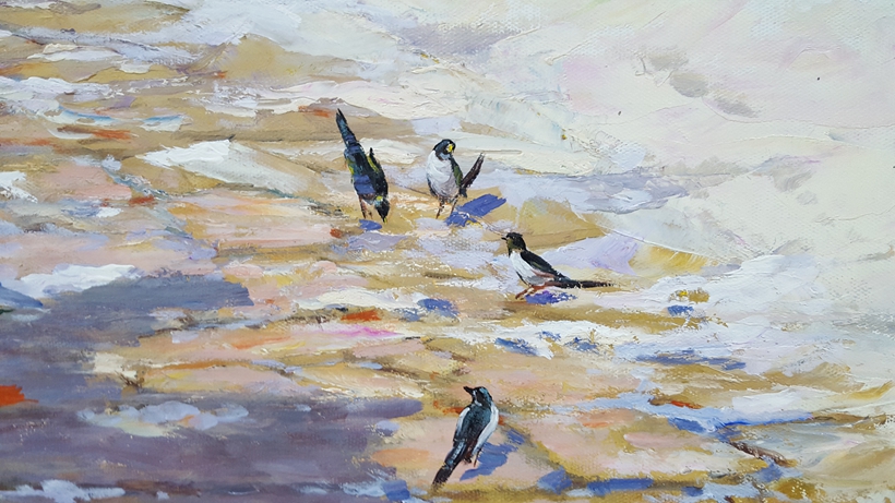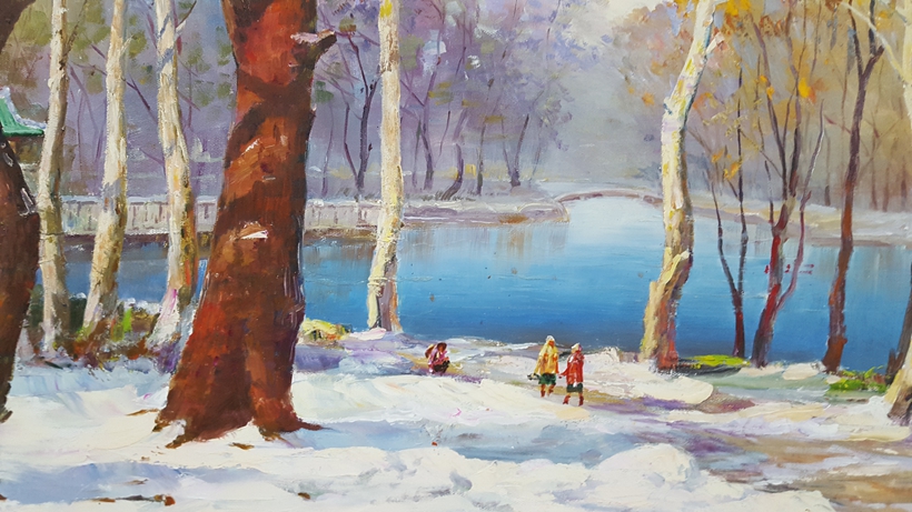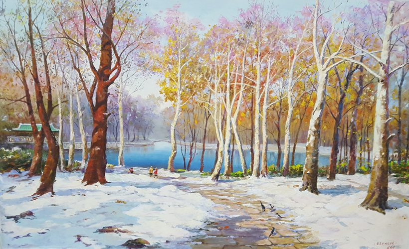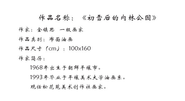 DQYCX30 金镇思《初雪后的内林公园》朝鲜一级画家